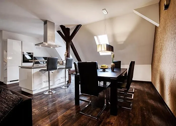 Moderne Ferienwohnung Hildburghausen - Fewo 1, di 100 m^2, situato a circa 15 minuti a piedi dalle Christuskirche, offre ai suoi ospiti Wi-Fi sia per affari che per piacere. L'appartamento offre agli ospiti una vista sulla città e una bottega del barbiere.